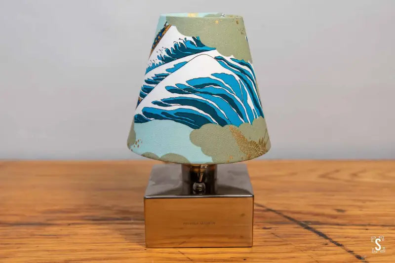 This shade is made with beautiful fabric, and thanks to the backing structure, it is both durable and functional. When illuminated, the fabric's patterns and colours create a warm and inviting glow and is ideal for a small table lamp. It is a one-of-a-kind addition to any room, adding a cosy atmosphere to your home.