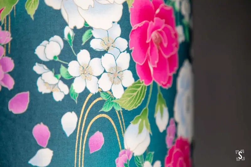 Drum Lampshade - 40cm Tall - Naka Blossoms - Navy/Pink/White
