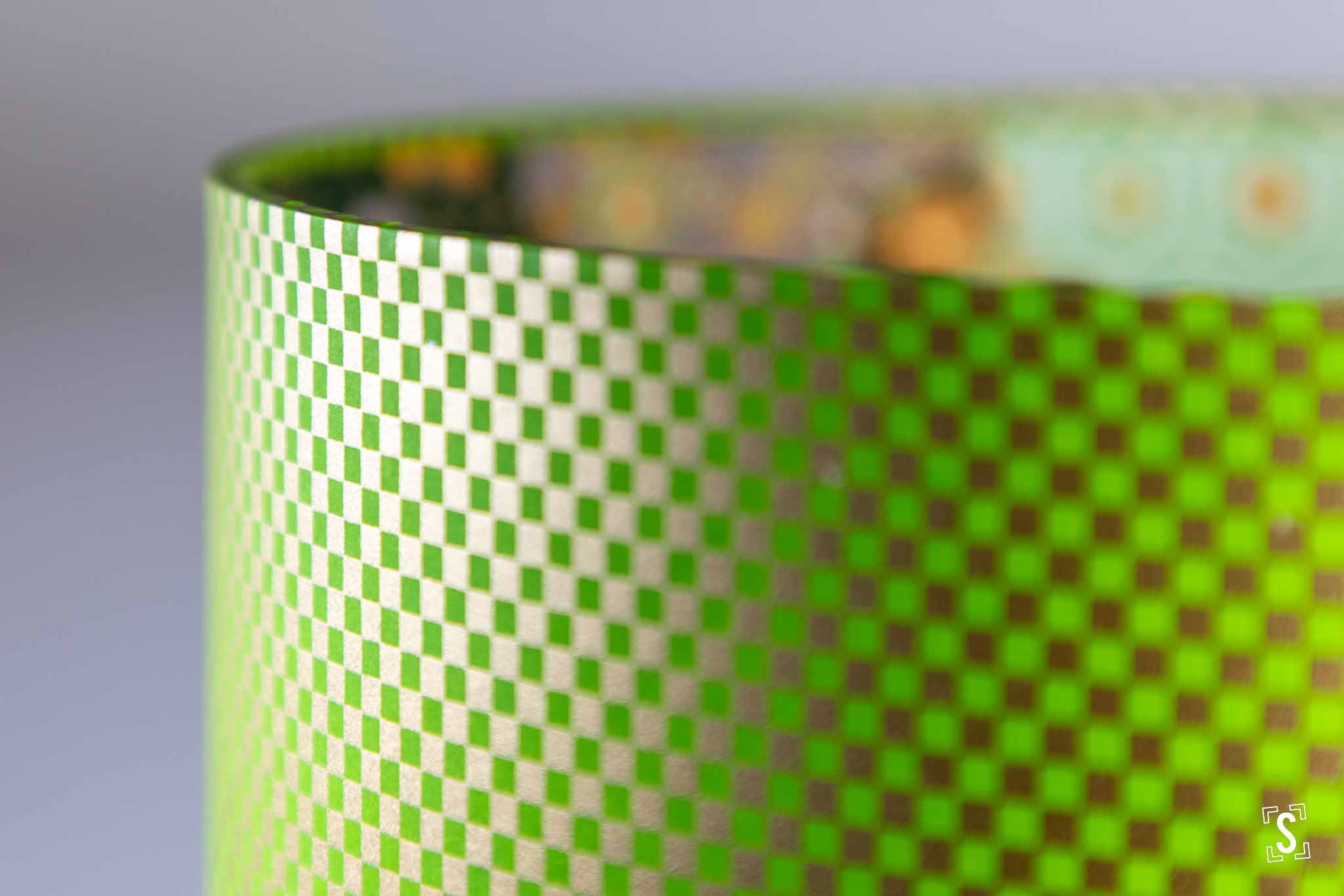 Double-Sided Drum Lampshade - 30cm - Checkers - Flowers and Hexagons - Green/Gold