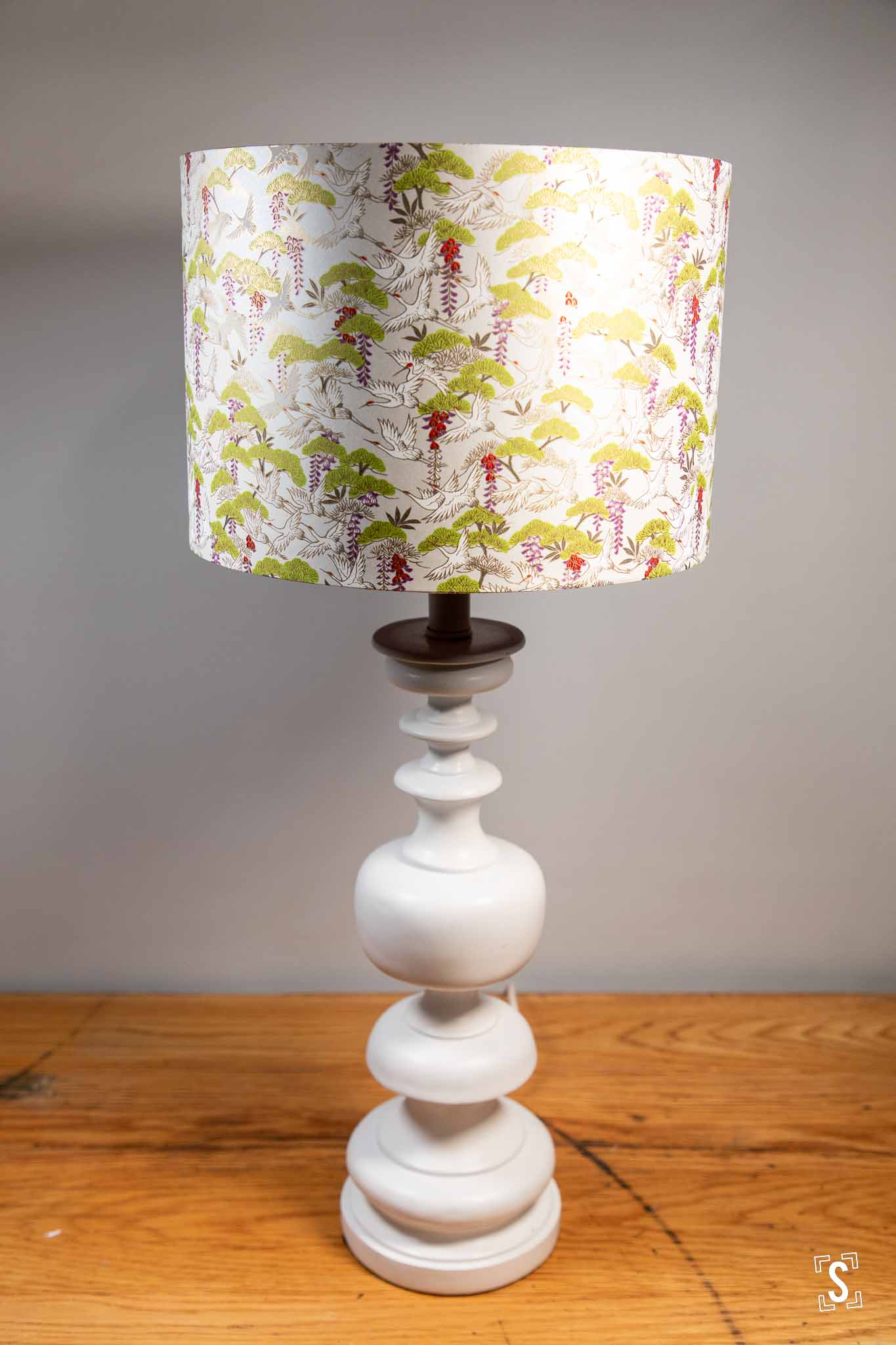 Double-Sided Drum Lampshade - 30cm - Cranes - Small Flowers - White/Green/Red
