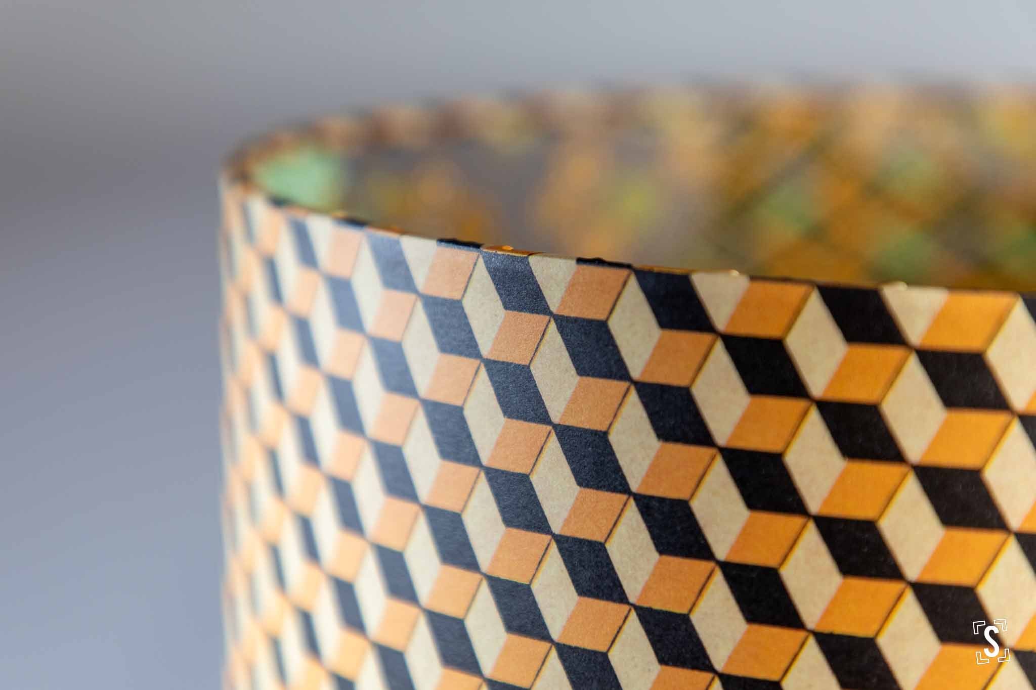 Double-Sided Drum Lampshade - 30cm - Cubes - Flowers and Hexagons - Yellow/Black