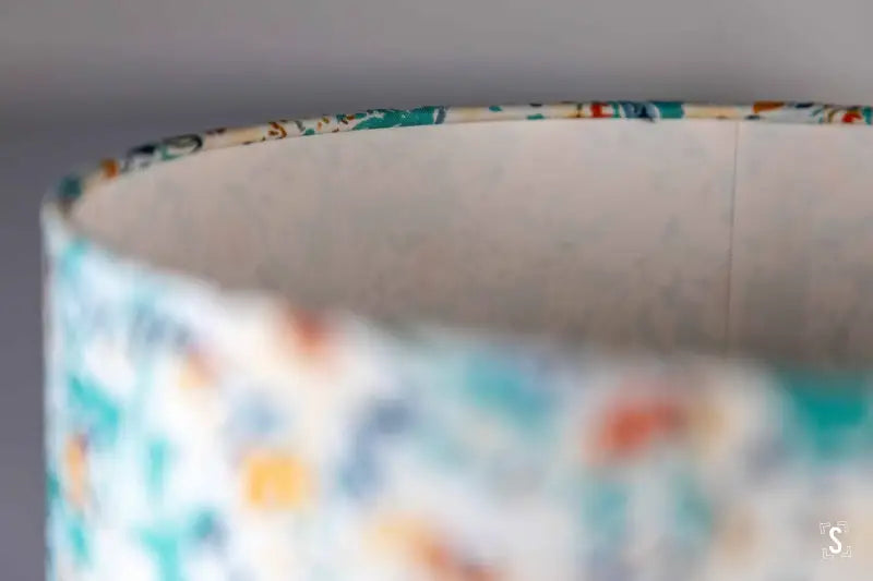 This shade is made with beautiful fabric, features a hand-rolled edge, and thanks to the backing structure, it is both durable and functional. When illuminated, the fabric's patterns and colours create a warm and inviting glow. It is a one-of-a-kind addition to any room, adding a cosy atmosphere to your home.
