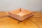 This fantastic leather box was formed by pinching the corners of the leather together. It's perfectly sized for standard 16 x 16 napkins but can be used for a variety of other purposes, such as holding keys or coins by your front door, organising your remote controls on your coffee table, holding craft supplies, or as a dice rolling surface for your game nights