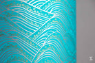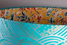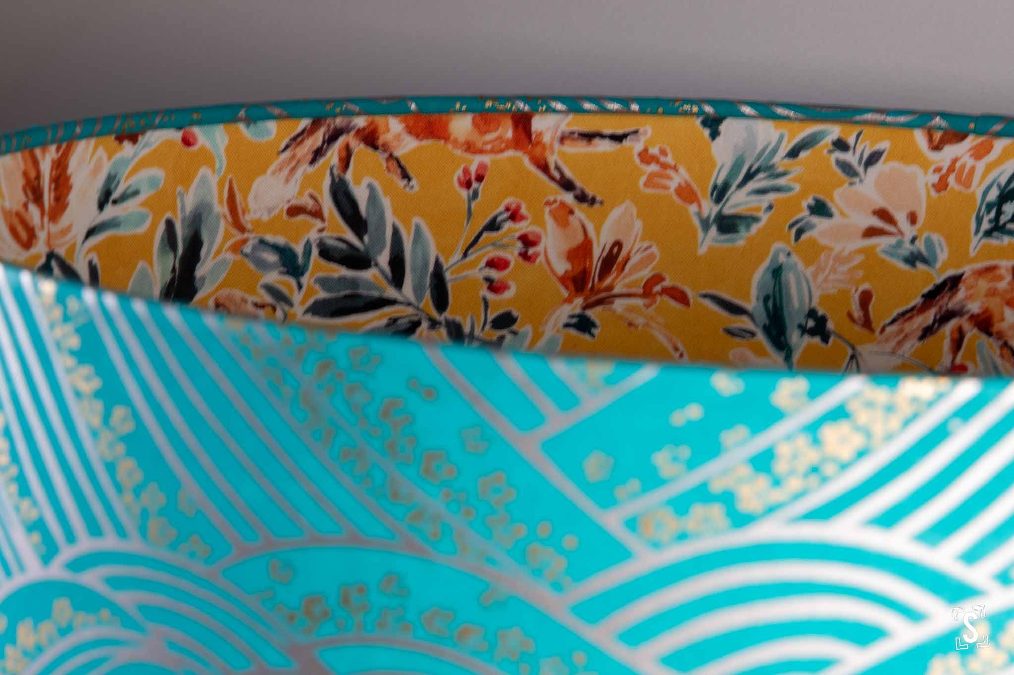 Double-Sided Drum Lampshade - 30cm - Waves with Little Flowers - Into the Wild - Teal/Yellow